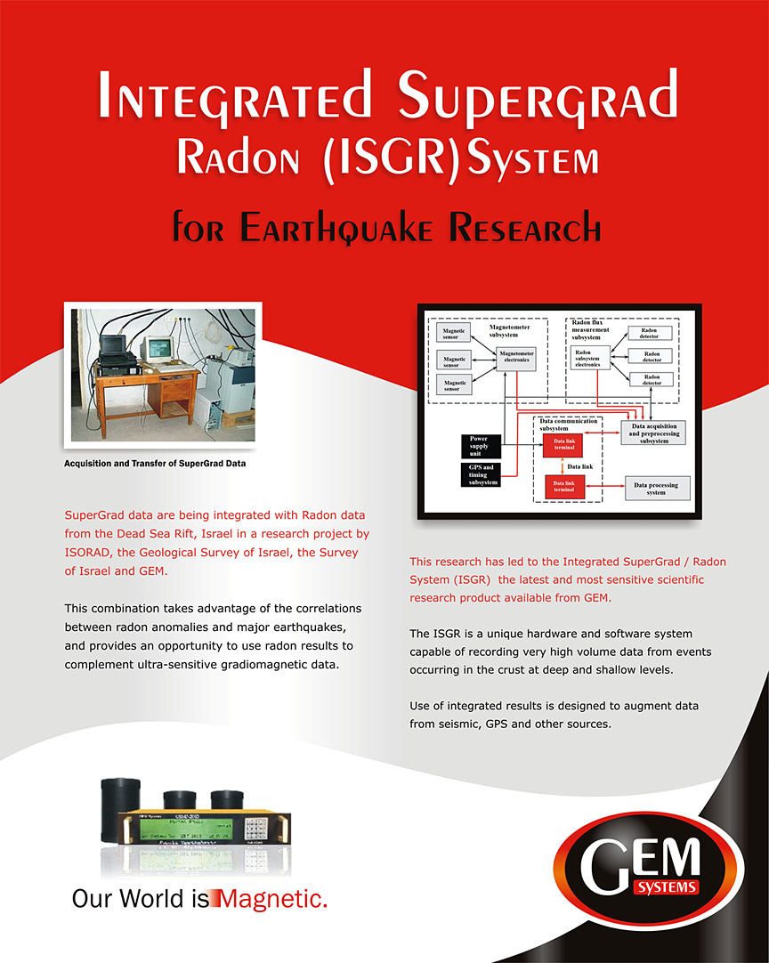 In a joint project with ISORAD, Israel Geologic Survey, Survey of Israel and GEM, researchers are integrating SuperGrad results with Radon data from the Dead Sea Rift, Israel. Radon studies to date have examined the temporal relationship between hundreds of weak earthquakes (M < 4.6) and the start time of 110 Radon flux signals. Earthquakes located within the three pull-apart grabens of the Dead Sea rift valley were found to occur preferentially within